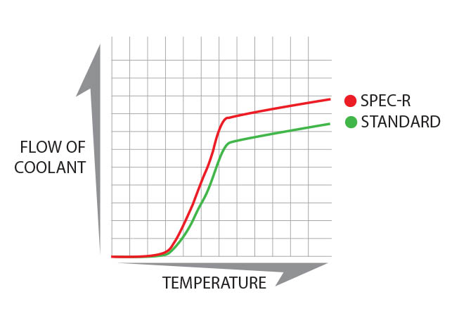 A unique design and thermal material inside the thermostat provides specific needs for high-performance engines.